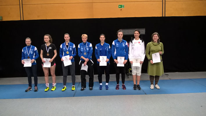 Susanne kämpfte in diesem Gefecht und konnte einen 11:14 Rückstand in einen 15:14 Sieg drehen ! Nach einer 15:9 Niederlage gegen die Berliner Fechterin Valerie Hörmann war dann im 8er
