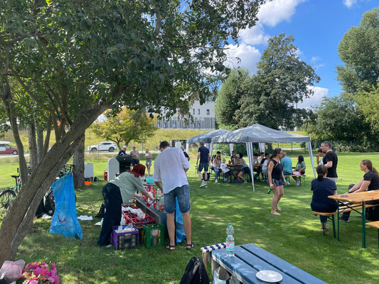 Für das leibliche Wohl war reichlich gesorgt. Jeder brachte etwas Leckeres mit, sodass ein vielseitiges Buffet entstand. Ergänzt wurde das Ganze durch frisch Gegrilltes.